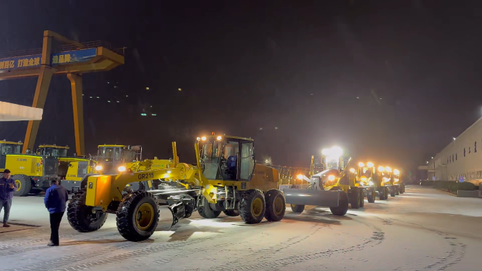 徐工平地機加滿油箱,列隊集合、整裝待發,全力以赴投入到破冰除雪,為道路暢通和行車安全保駕護航。徐工的機手們更是發揮了徐工人無畏艱苦、敢于奉獻的精神,以高度的責任感和使命感,堅守在除雪一線,保障市民的安全出行。冰雪紛飛的夜幕下,徐工平地機的燈光照亮了歸家人的路。