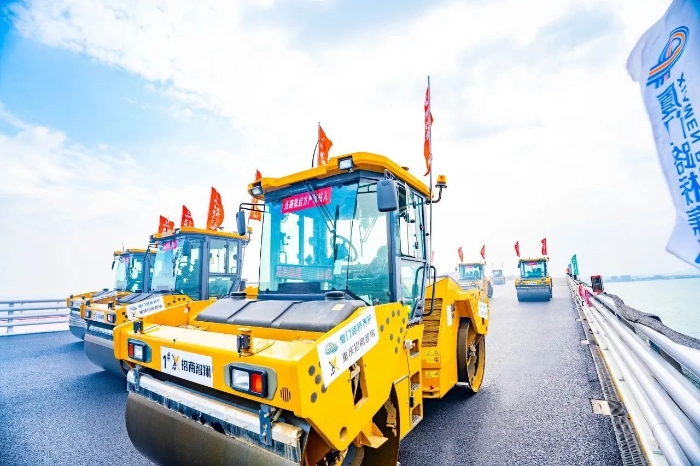 翔安大橋在建設中既要克服海上風浪大、潮差高、巖層強度高、跨越生態保護區等困難,又要兼顧綠色環保;要在這種復雜的環境中保證施工質量,對設備和施工技術的選擇就顯得尤為重要。徐工數字化智能施工集群憑借其智能化、高精度、高效率等顯著優勢,成功克服了傳統施工方式難以應對的諸多難題,可精準適配翔安大橋的橋面鋪裝工作。