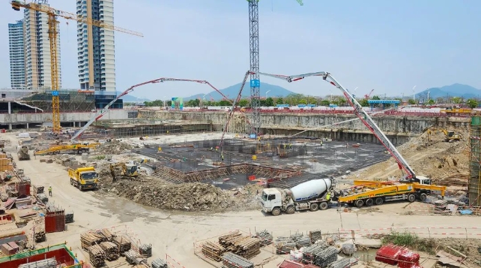 據(jù)了解,橫琴科學(xué)城(一期)是全國最大的EPC房建項(xiàng)目,涵蓋31棟建筑,用地面積約32.2萬平方米,總建筑面積高達(dá)116萬平方米。而此次施工更是需要一次性澆筑5000方C35標(biāo)號(hào)混凝土,這無疑是一場對(duì)設(shè)備性能與施工團(tuán)隊(duì)能力的嚴(yán)峻考驗(yàn)。