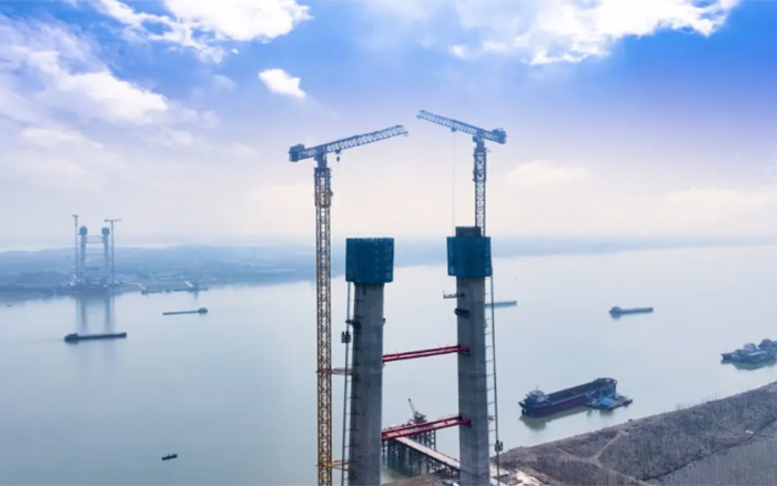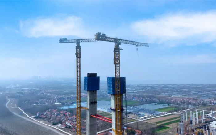目前,大橋主塔建設高度已達144.5米,徐工XGT2230A-100S正助力主塔以平均每周6米的速度迅速“節節長高”,全力沖刺年中實現主塔封頂的目標。