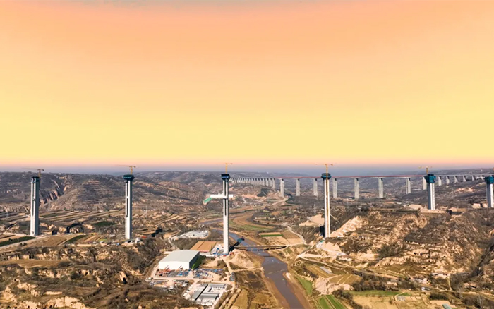 在廣袤的隴東地區,寒風凜冽,穿過層層大霧,俯瞰馬蓮河特大橋,似玉帶嵌入黃土高原,矗立河道旁的橋墩似根根“擎天柱”,徐工S1系列塔機正如火如荼加速建設,用奮斗的激情創造橋梁施工典范。