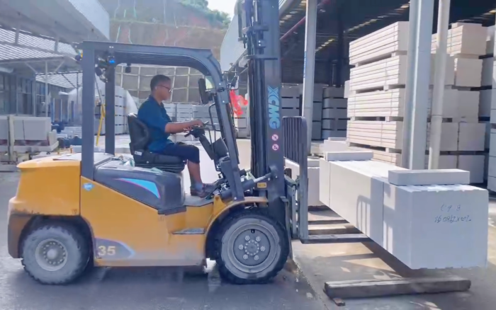 湖南某石材廠內,徐工叉車新 E 系列電動平衡重叉車,耀世登場!