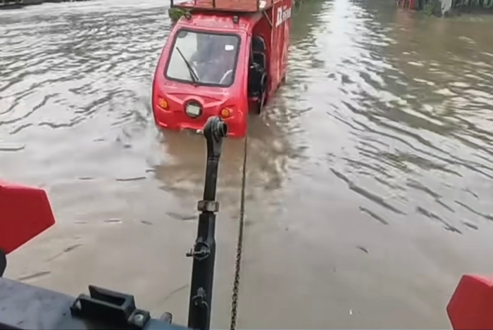 憑借產品動力強勁、牽引力大等優勢,迅速幫助涉水車輛脫險。徐工拖拉機將部分受困車輛和物資轉移至安全地帶,為災區人民提供了及時有效 的幫助。