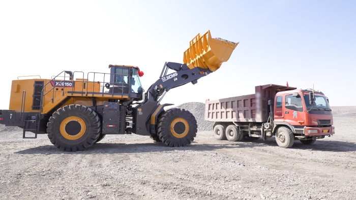 國內(nèi)首臺,徐工XC9150超大噸位混動裝載機正在全力作業(yè),一臺臺礦用卡車被陸續(xù)裝滿,依序駛出礦區(qū)。徐工XC9150投入使用僅僅三個月,作業(yè)時間近1000小時,成為礦區(qū)工程裝備群的“模范生”。