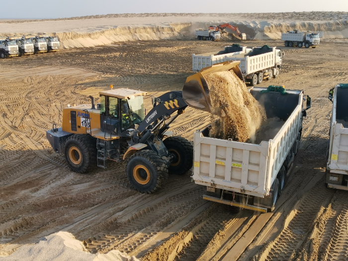 亞洲某國,新建大型公園建設(shè)現(xiàn)場,徐工LW700HV與ZL50GN相互配合高效進(jìn)行著土方作業(yè)。2020年,客戶開始采購徐工設(shè)備,對(duì)ZL50的作業(yè)性能與可靠性非常滿意,隨著業(yè)務(wù)量的不斷增加,客戶開始考慮大噸位產(chǎn)品。經(jīng)過當(dāng)?shù)匦旃やN售的全力推薦,客戶加購了徐工LW700HV裝載機(jī),該產(chǎn)品也已優(yōu)異表現(xiàn)贏得客戶的贊賞。配合自卸車,對(duì)密度約1.8t/m3的沙土進(jìn)行轉(zhuǎn)運(yùn)作業(yè),徐工LW700HV搭配4.5m3鏟斗作業(yè)起來效率驚人。