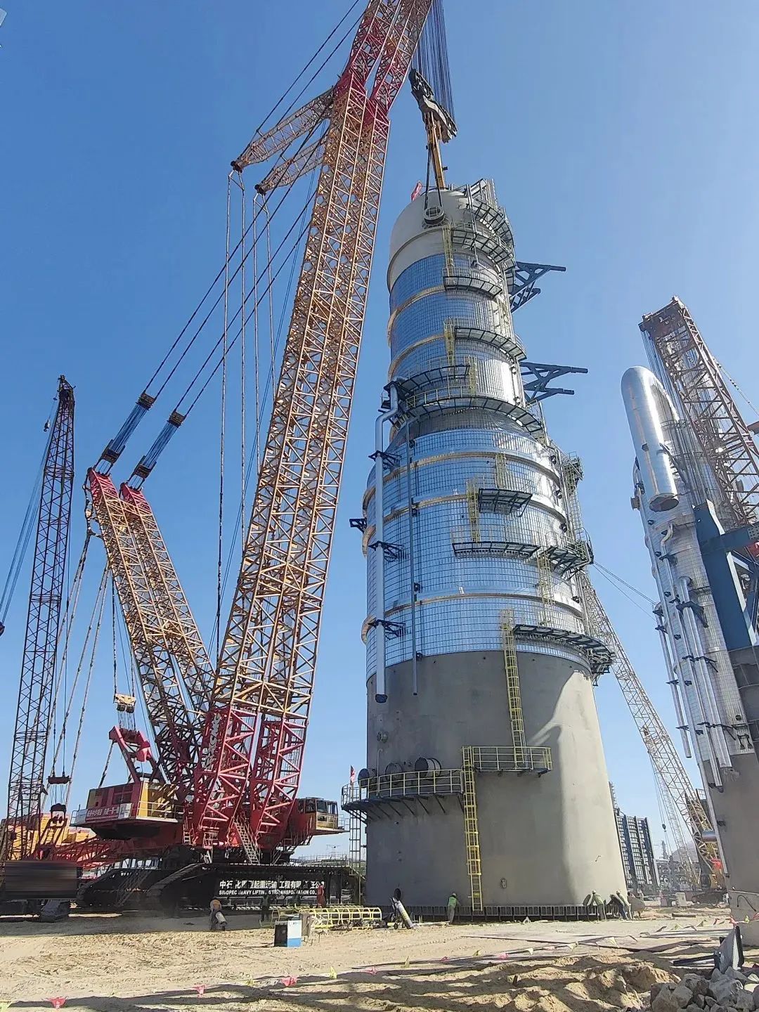近日,徐工XGC88000(4000噸級)履帶起重機在我國華南某大型石化項目現場,成功完成重達2000噸的急冷水塔設備的吊裝任務。