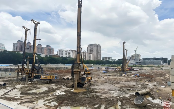 施工區地質構造復雜,石灰巖、沙層,粘土和溶洞交錯,樁深20-30m,樁徑0.8-1.4m,且面臨塌方、縮孔、漏漿等危險。如此高難度的施工條件,項目方果斷選擇徐工旋挖鉆機進行助力。