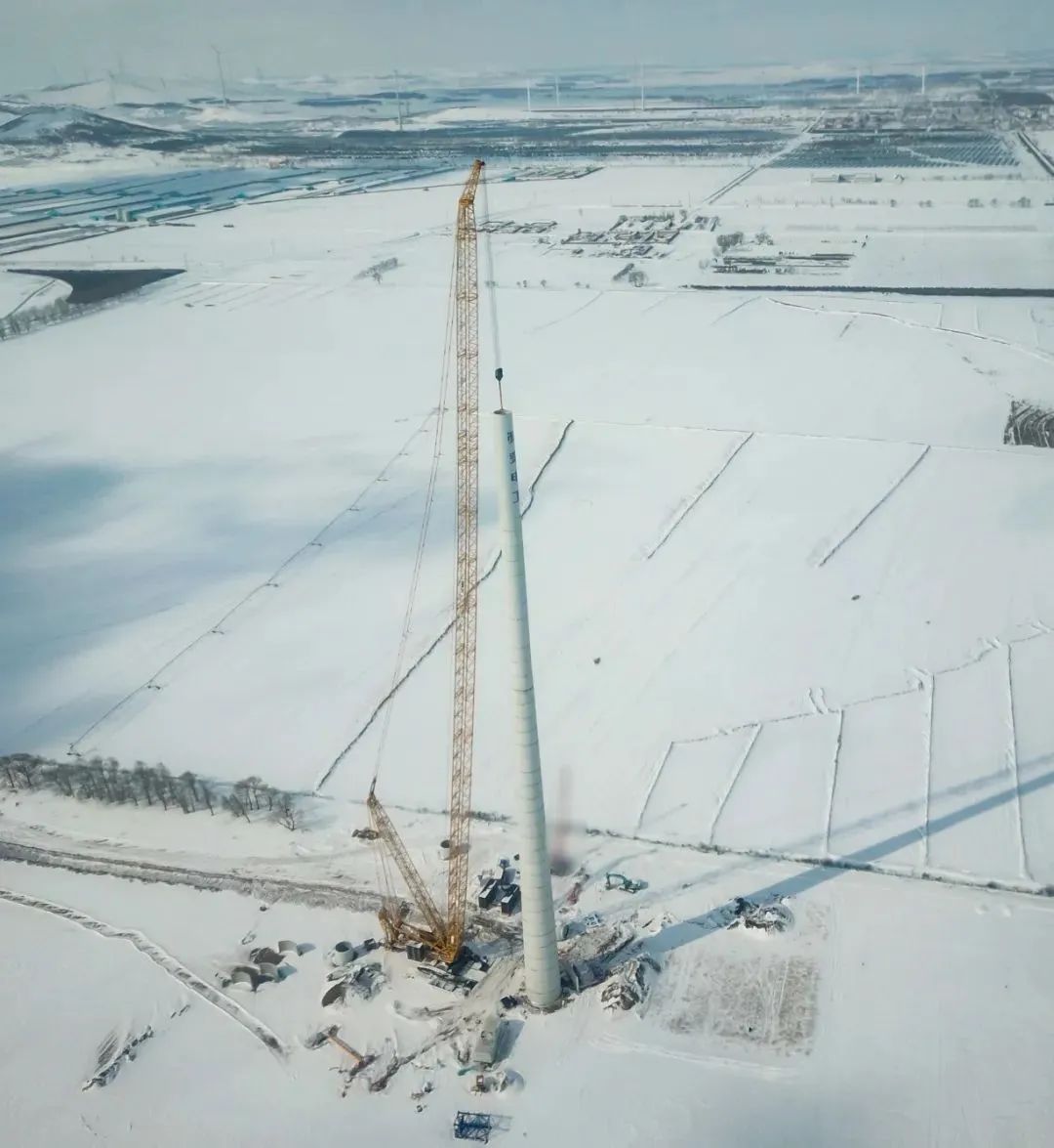 在華北某風光儲氫項目,XLC18000M(1300噸級)履帶起重機成功完成項目首臺7.5兆瓦風機吊裝。