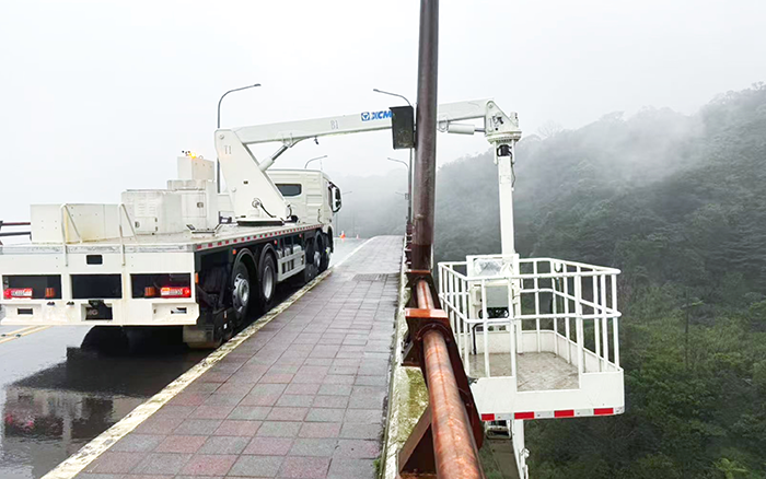在檢測現場,徐工 QJZ18 大顯身手。其最大跨寬 4.4 米、最大跨高 5.6 米,水平作業幅度達 18 米,輕松跨越復雜橋體,快速抵達指定檢測點。施工單位現場負責人感慨:“以前檢測這種大橋,調整設備位置耗時久,效率低,現在有了徐工 QJZ18,效率大幅提升?!?其 270kg 承載的作業平臺,讓檢測人員能便捷攜帶儀器,細致檢測橋梁各處。