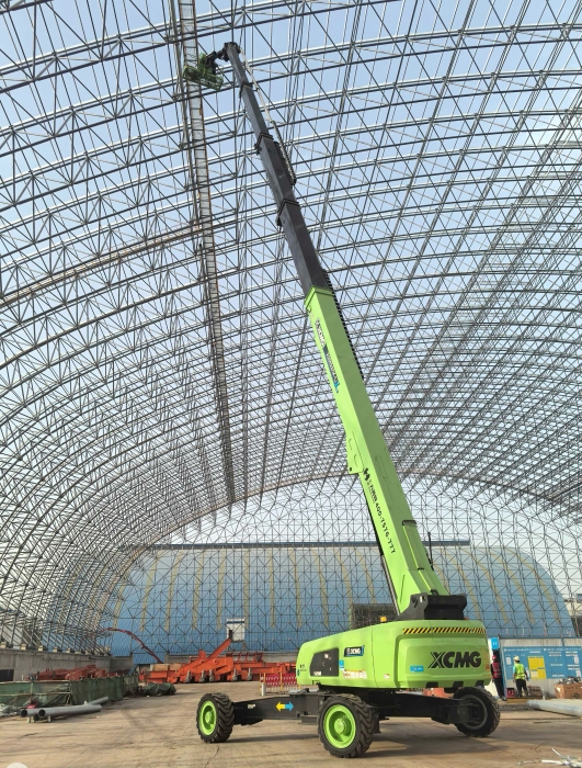 近日,在河南省平頂山市發電廠擴建項目現場,一臺“青山綠”涂裝的XGS52ACK-Li純電直臂式高空作業平臺格外亮眼,這是該車在2024年上海寶馬展全球首發后首次實戰應用。
