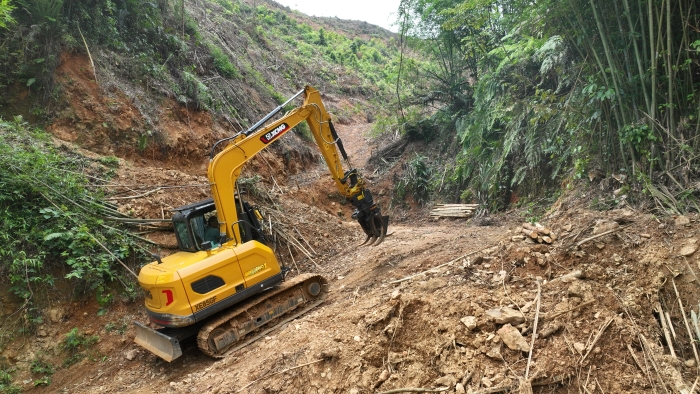 在鄭俊回鄉之前,父輩大多是靠人工作業,僅有的設備就是幾臺非常低端的輪挖,也就能夾裝木材,偶爾修修路的話,平整度、壓實度都很差,大車走幾趟就壞了,遇到稍微陡一點的坡也上不去,嚴重影響了作業進度。