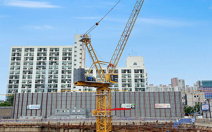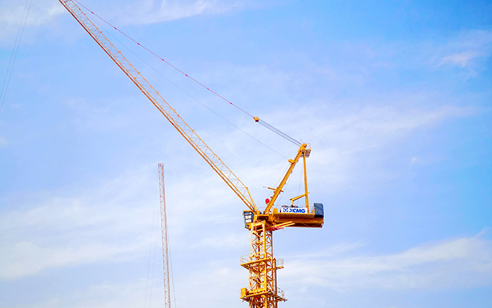 在韓國首爾,徐工塔機參建當地知識產業園項目,藍天白云之下,兩臺徐工XGL300-18S格外耀眼。韓國建筑密度大,項目施工空間較為有限,動臂塔機充分滿足當地建設需求。