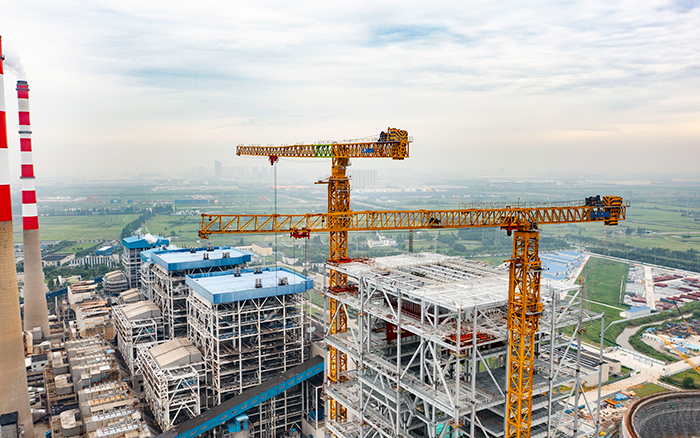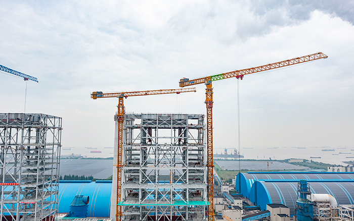 側(cè)望長(zhǎng)江畔,機(jī)器轟鳴、江水潺潺,華能太倉(cāng)電廠(chǎng)機(jī)組擴(kuò)建項(xiàng)目施工現(xiàn)場(chǎng)一派繁忙景象,XGT3100-160S、XGT1350-64S兩臺(tái)徐工超大塔穩(wěn)穩(wěn)矗立在高聳的鋼架間吊裝作業(yè)。