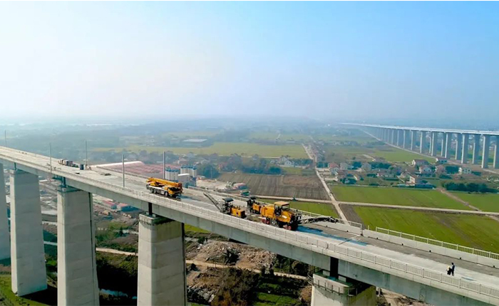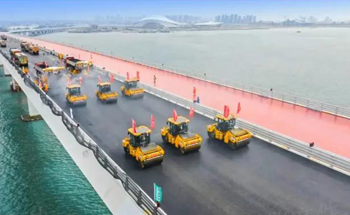 通過毫米級精度控制技術,實現了復雜橋區多場景施工的高效協同,有效提升了橋面平整度與施工效率,確保了全球最大跨度斜拉橋的鋪裝質量。
