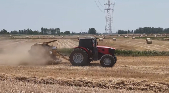 我帶的是 2.2 米的揀拾打捆機,跨區去做打包作業,效率那是沒話說,比之前用的機器快多了。