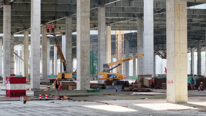 近日,在總投資550億的合肥國顯第8.6代AMOLED生產線項目主廠房內,20余臺徐工高空作業平臺在酷暑烈日下,呈現了一場精彩的“群車協奏”。