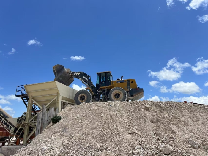 該采石場是當?shù)刂匾橇仙a(chǎn)基地,其核心生產(chǎn)環(huán)節(jié)便就是將爆破后的石料通過裝載機轉(zhuǎn)運至生產(chǎn)線的上料口。這一工況不僅需要強大的鏟掘力和實用的鏟斗插入堅硬的石料堆,更需要在有限空間內(nèi)頻繁進退、轉(zhuǎn)向和裝卸,保證生產(chǎn)線的持續(xù)高效運轉(zhuǎn)。