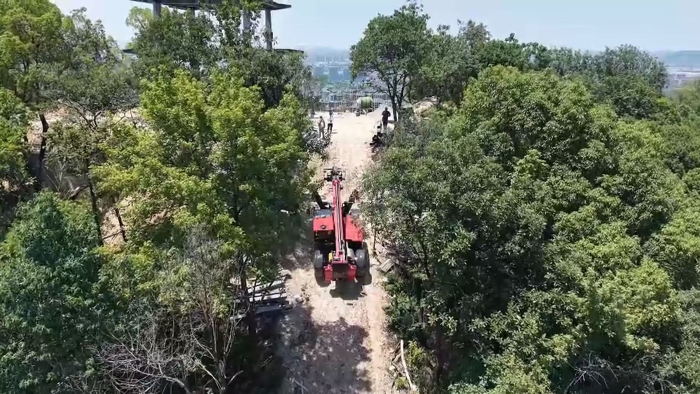 穿過(guò)羅峰寺旁的盤(pán)山公路,一抹紅色在山野間格外顯眼,徐工伸縮臂叉裝車(chē)XT4018K正將重達(dá)2.2噸的結(jié)構(gòu)物料運(yùn)送至14米的高度,全力建設(shè)全鋼結(jié)構(gòu)寺廟。