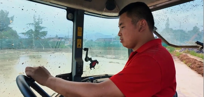 換了徐工XT1004后,徹底不一樣了——豪華駕駛室,密封得特別好,還帶冷暖空調,座椅坐著也舒服。配了前后雨刮器,水田里的泥水濺起來也不怕擋視線,里頭還帶了音響,干活累的時候放首歌,也沒那么枯燥了。現在干一天活,身上干干凈凈的,也不覺得累,奶奶總算不用再替我操心了。