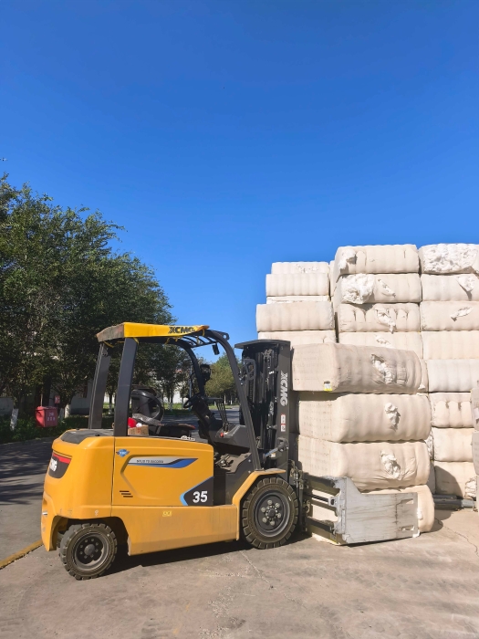 棉花廠的作業(yè)場景復(fù)雜,原材料搬運(yùn)與成品轉(zhuǎn)運(yùn)任務(wù)繁重。以往,傳統(tǒng)搬運(yùn)設(shè)備在效率、環(huán)保等方面存在諸多局限。而此次進(jìn)駐的徐工鯤鵬電動平衡重叉車,擁有強(qiáng)大的性能優(yōu)勢,堪稱棉花廠物料搬運(yùn)的 “理想搭檔”。它采用鉛鋰同平臺設(shè)計(jì),能滿足不同場景、不同客戶多樣化的能源需求。無論是在原材料堆放區(qū)搬運(yùn)沉重的棉花包,還是在成品倉庫轉(zhuǎn)運(yùn)打包好的棉產(chǎn)品,都能輕松應(yīng)對。其驅(qū)動系統(tǒng)、起升系統(tǒng)均采用免維護(hù)全交流大功率電機(jī),前輪電機(jī)獨(dú)立控制,動力強(qiáng)勁,大大提升了搬運(yùn)效率。