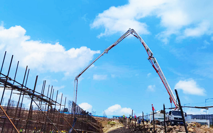 近日,在埃塞俄比亞的斯亞貝巴中地海外項目現場,徐工HB58V泵車擔當施工主力軍。