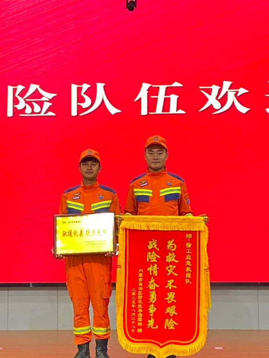 9月5日,內蒙古自治區防汛抗旱指揮部于呼和浩特市托克托縣人民政府舉行防汛搶險隊伍歡送儀式,徐工應急救援隊等馳援內蒙古的隊伍榮獲錦旗與證書。