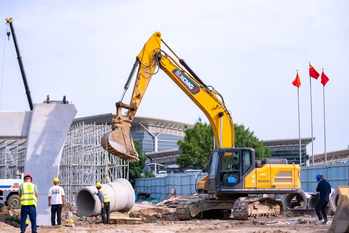 ?在航站樓基坑開(kāi)挖階段,徐工大挖憑借澎湃動(dòng)力與強(qiáng)勁輸出,成為土方作業(yè)的中流砥柱;