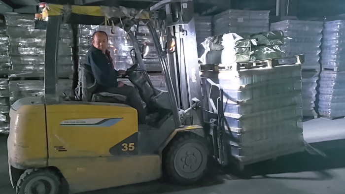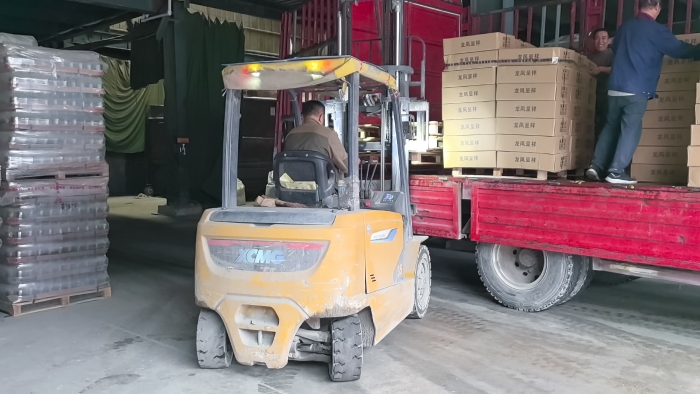 投入使用后,徐工叉車的優勢快速顯現:裝卸環節,叉齒精準對位托盤,配合平穩的升降速度,玻璃瓶破損率直接下降 80%;轉運效率也大幅提升,原本人工需 1 小時完成的庫區調撥,現在叉車 20 分鐘就能搞定,還減少了 3 名搬運工人的人力投入。