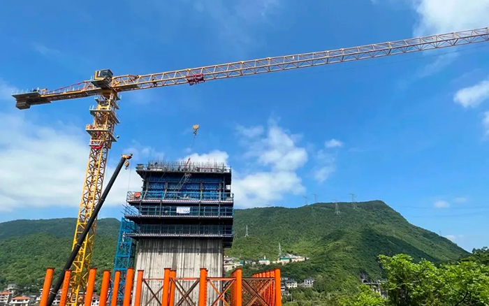 XGT7528-18S1參建賀龍特大橋。在現場,火熱施工的 XGT7528-18S1精準控制起升回轉,配合施工各道工序無縫銜接,大幅提升施工效率,助力湖南省級“六縱七橫”高速公路網建設,以硬核實力,獲得口碑認可。
