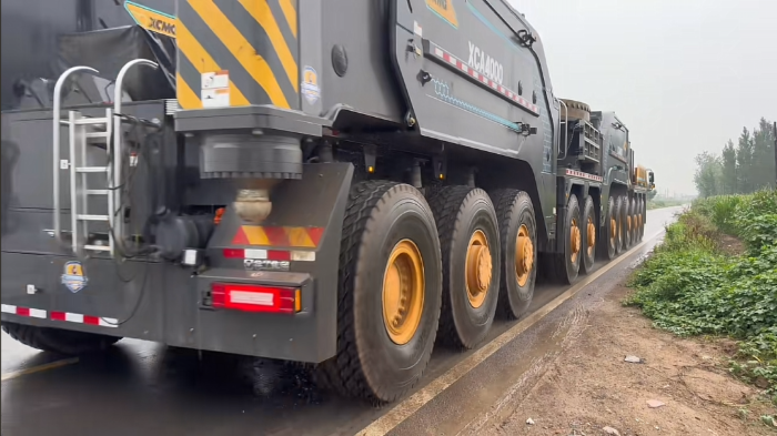河北鄉間的暴雨里,一輛近30米長的“鋼鐵巨獸”正緩緩“橫移”——11橋22個輪胎穩穩抓地,16個驅動輪沖破泥濘,即便暴雨讓土路打滑,它也能靠“蟹行模式”精準靠邊。這臺價值近“半個小目標”的徐工XCA4000起重機,正用硬核實力詮釋“大國重器”的真正含義。