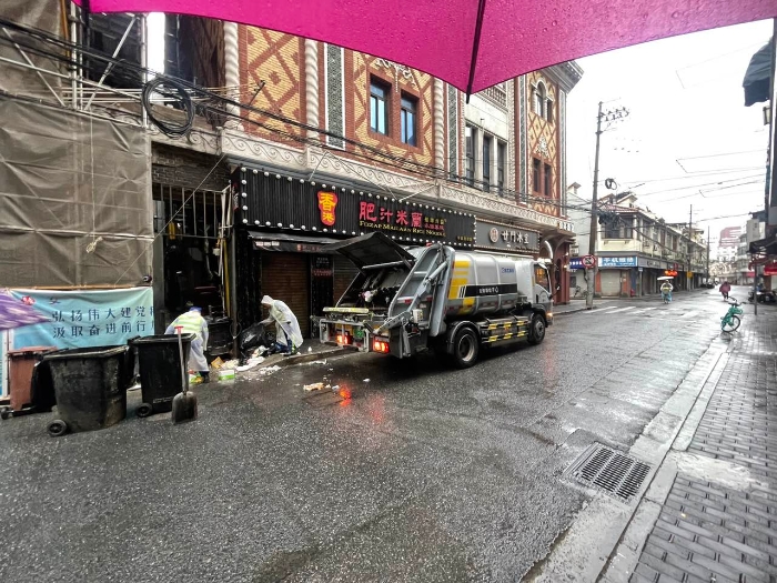 上海黃浦區南京東路,這條承載著百年商脈的中華第一街,每日人流如織、商鋪林立。當霓虹初上時,徐工XGH5120ZYSXBEV純電動壓縮車正悄然穿梭于車水馬龍間,以零排放、低噪音的綠色身姿,完成著日均近300噸的生活垃圾收轉運任務。
