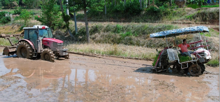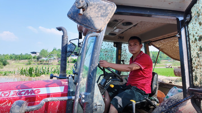 去年三月,他偶遇徐工XT1004,那會兒他正愁換家里的老拖拉機,一眼就看中了徐工拖拉機。小輪距設計、輕量化車身、高地隙結構、水旱兩用密封前橋——在四川狹窄的水田間,它穿梭自如,不陷車、不拖沓,干活就巴適得很!