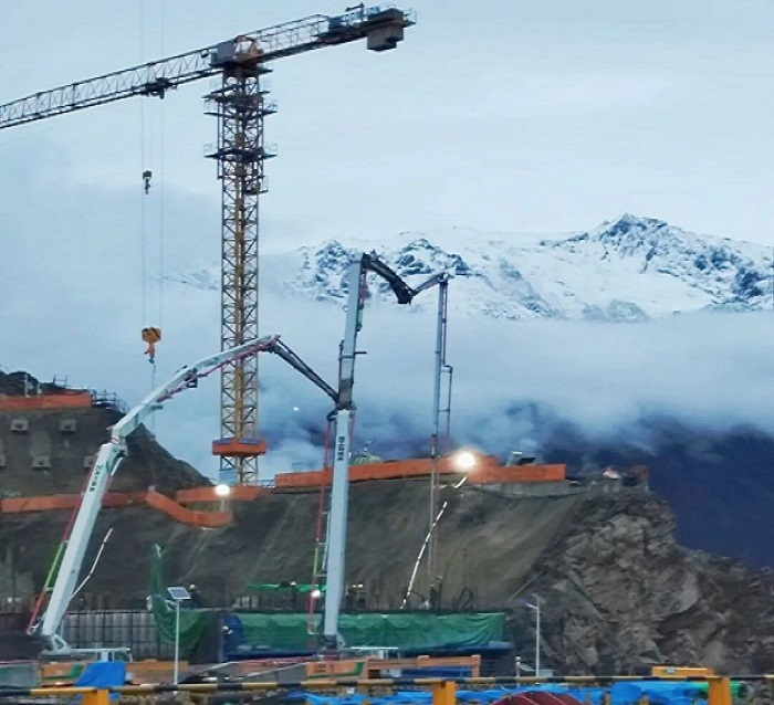 連續(xù)泵送14小時(shí)后,峽谷開(kāi)始刮起側(cè)風(fēng),臂架末端出現(xiàn)輕微擺動(dòng)。在第三代智能臂架技術(shù)加持下,臂架上下振幅<130mm,左右<100mm,保證平穩(wěn)澆筑。
