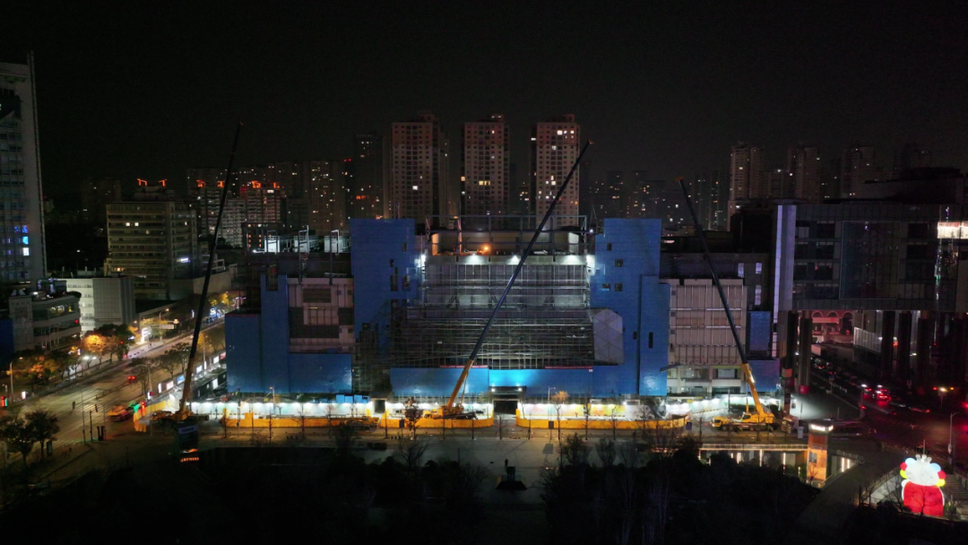 在徐州市中心,金鷹國際購物中心A座正在進行樓體改造,不僅加蓋一整層,更在設(shè)計上延續(xù)了B座外立面的風格,這座地標性建筑即將煥然一新。